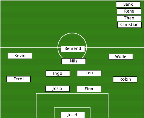 ---------------------------Bank-- ---------------------------Rene-- ---------------------------Theo-- ----------------------------Christian ---------------Behrend----------- ---Kevin-------------------Wolle-- ---------------Nils-------------- ------------Ingo----Leo----------- ---Ferdi--------------------Robin- ------------Josia---Finn---------- ---------------Josef-------------