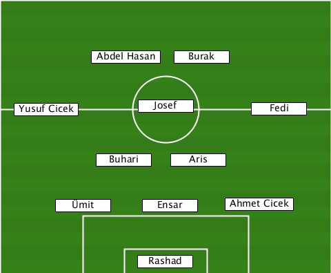 ----------Abdel Hasan------------ ------------------Burak---------- ---Yusuf Cicek--Josef-------Fedi--- -----------Buhari--Aris----------- -------Ümit-----Ensar----Ahmet Cicek ---------------Rashad------------