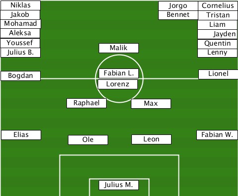 --Niklas------------------------- -----------------------Jorgo-Cornelius -Jakob------------------Bennet-Tristan -Mohamad---------------------Liam- -Aleksa----------------------Jayden -Youssef-Julius B.-Malik-------Quentin-Lenny --Bogdan--------Fabian L.-----Lionel ---------------Lorenz------------ ----------Raphael---Max----------- --Elias-----Ole------Leon------Fabian W. ---------------Julius M.---------