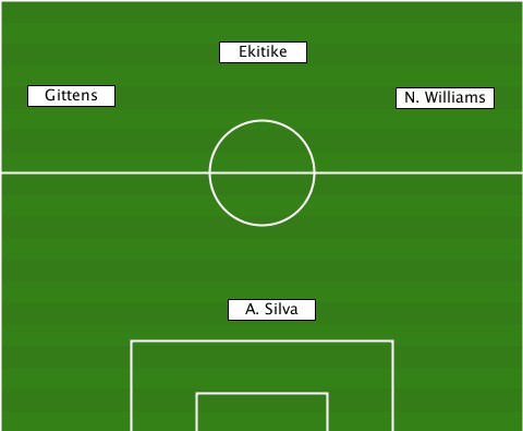 ---------------Ekitike----------- ---Gittens-----------------N. Williams ---------------A. Silva----------