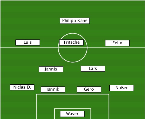 ---------------Philipp Kane------ -----Luis-------Tritsche---Felix--- ----------Jannis----Lars---------- ----Niclas D.-Jannik-Gero----Nußer-- ---------------Waver-------------