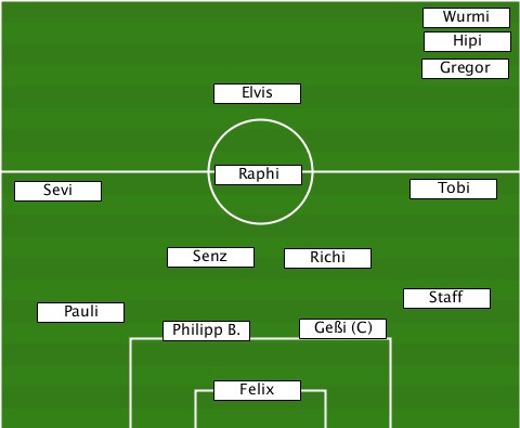---------------------------Wurmi- ----------------------------Hipi- ---------------------------Gregor ---------------Elvis------------- --Sevi----------Raphi--------Tobi-- ------------Senz----Richi--------- ----Pauli------------------Staff-- -----------Philipp B.-Geßi (C)---- ---------------Felix-------------
