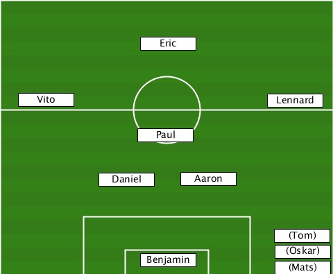 ---------------Eric-------------- ---Vito---------------------Lennard ---------------Paul-------------- -----------Daniel---Aaron--------- ----------------------------(Tom) ---------------Benjamin------(Oskar)-(Mats)