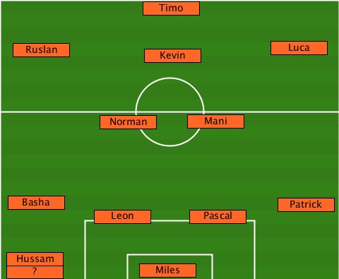 ---------------Timo-------------- ---Ruslan-------Kevin--------Luca-- -----------Norman---Mani---------- --Basha----------------------Patrick ----------Leon------Pascal-------- --Hussam------------------------- --?-------------Miles-------------