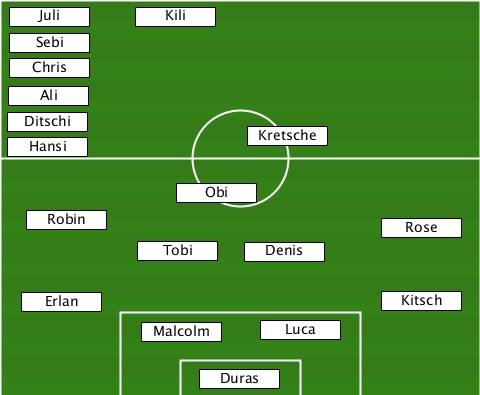 --Juli--------------------------- ----------Kili------------------- --Sebi--------------------------- --Chris-------------------------- --Ali---------------------------- --Ditschi-Hansi-----Kretsche------- -------------Obi----------------- ---Robin--------------------Rose-- -----------Tobi----Denis---------- ---Erlan--------------------Kitsch -----------Malcolm--Luca---------- ---------------Duras-------------