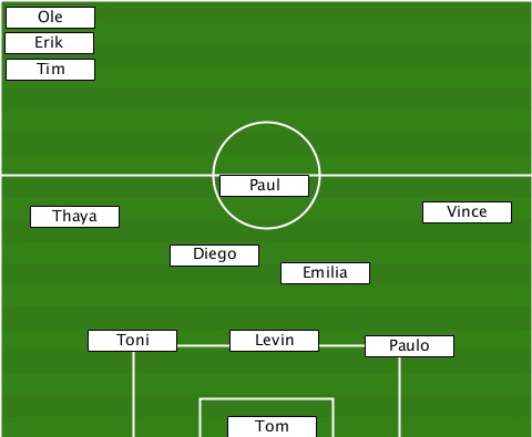 --Ole---------------------------- --Erik--------------------------- --Tim---------------------------- ---------------Paul-------------- ---Thaya--------------------Vince- ------------Diego---------------- ------------------Emilia--------- -------Toni-----Levin----Paulo----- ---------------Tom---------------