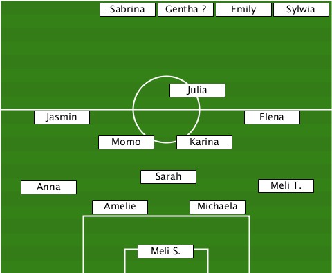 ----------------------Emily------ -----------Sabrina-Gentha ?---Sylwia ------------------Julia---------- -----Jasmin---------------Elena--- -----------Momo----Karina--------- ---Anna---------Sarah-------Meli T. ----------Amelie-----Michaela----- ---------------Meli S.-----------