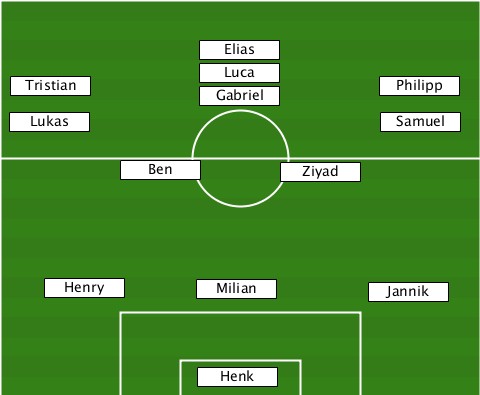 ---------------Elias------------- --Tristian------Luca-Gabriel--Philipp --Lukas---------------------Samuel ---------Ben---------Ziyad-------- ----Henry-------Milian------Jannik- ---------------Henk--------------