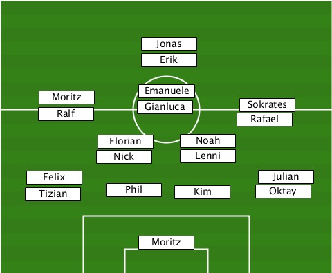 ---------------Jonas------------- ---------------Erik-------------- -----Ralf-Moritz-Gianluca-Emanuele-Rafael-Sokrates -----------Florian--Noah---------- -----------Nick-----Lenni--------- ----Felix------------------Julian- ----Tizian---Phil---Kim------Oktay-- ---------------Moritz------------