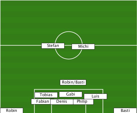 -----------Stefan---------------- ------------------Michi---------- ---------------Robin/Basti------- ----------Tobias-Gabi--Luis-------- ---------Fabian-Denis-Philip------- -Robin-----------------------Basti