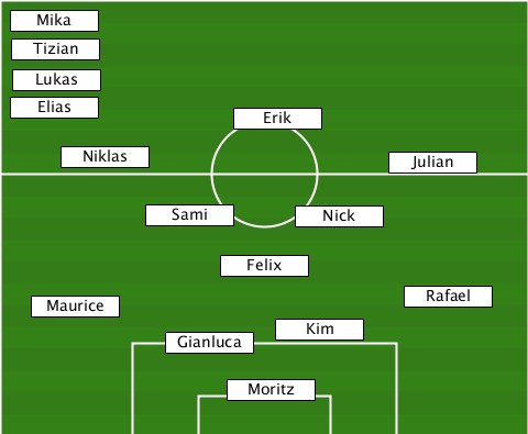 --Mika--------------------------- --Tizian------------------------- --Lukas-------------------------- --Elias----------Erik------------- -----Niklas---------------Julian-- ----------Sami------Nick---------- ---------------Felix------------- ---Maurice-----------------Rafael- -----------Gianluca-Kim----------- ---------------Moritz------------