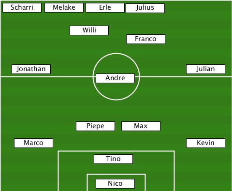 -------------Erle---------------- --Scharri-Melake-----Julius-------- -----------Willi----------------- -------------------Franco-------- ---Jonathan-----------------Julian ---------------Andre------------- ------------Piepe--Max------------ ---Marco--------------------Kevin- --------------Tino--------------- ---------------Nico--------------
