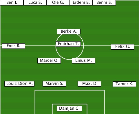 -------Luca S.------------------- -Ben J.------Ole G.-Erdem B.-Benni S. ---------------Berke A.---------- --Enes B.------Emirhan T.----Felix G. ----------Marcel O.-Linus M.------ --Louiz Dion A.-Marvin S.-Max. D-Tamer K. ---------------Damjan C.---------