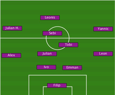 -------------Leonis-------------- --Julian H.-----------------Yannic -------------Sebi---------------- ------------------Tobi----------- --Alex-------Julian----------Leon-- ------------Ivo-----Emman--------- ---------------Filip-------------