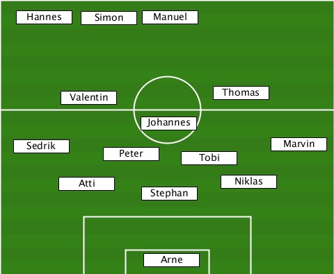 ---Hannes------------------------ ---------Simon--Manuel------------ -------Valentin--------Thomas----- ---------------Johannes---------- ---Sedrik---Peter----Tobi-----Marvin -------Atti-----Stephan--Niklas---- ---------------Arne--------------
