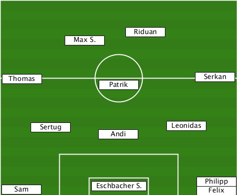 ------------------Riduan--------- ----------Max S.----------------- --Thomas--------Patrik--------Serkan ------Sertug----Andi------Leonidas- --Sam----------Eschbacher S.--Philipp-Felix