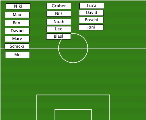 -------------------Luca---------- ---Niki------Gruber--------------- ---Max-------Nils----David--------- ---Beni-Davud-Noah-Leo-Joni-Boschi---- ---Marv------Blasl---------------- --Schicki------------------------ ---Mo----------------------------