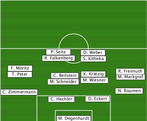 -----------P. Seitz-------------- -------------------D. Weber------ -----------R. Falkenberg-S. Kitheka ---T. Peter-F. Moritz-M. Schneider-C. Beilstein-M. Wiesner-K. Krätzig-R. Freimuth-M. Markgraf --C. Zimmermann-------------N. Roumen ------------C. Hechler-D. Eckert-- --------------M. Degenhardt------