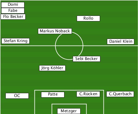 --Domi--------------------------- --Fabe--------------------------- --Flo Becker--------Rollo--------- ----------Markus Noback---------- --Stefan Kring-------------Daniel Klein ------------------Sebi Becker---- -----------Jörg Köhler----------- ---OC-------Patte----C.Rücken-C.Querbach ---------------Metzger-----------