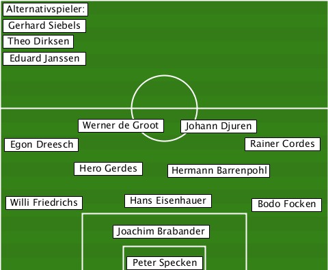--Alternativspieler:------------- --Gerhard Siebels---------------- --Theo Dirksen------------------- --Eduard Janssen----------------- ---------Werner de Groot-Johann Djuren --Egon Dreesch------------Rainer Cordes ---------Hero Gerdes-Hermann Barrenpohl --Willi Friedrichs-Hans Eisenhauer-Bodo Focken ------------Joachim Brabander---- --------------Peter Specken------