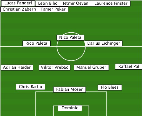--Lucas Pangerl------------------ ---------Leon Bilic-Jetmir Qevani-Laurence Finster --Christian Zabern-Tamer Peker---- --------------Nico Paleta-------- -------Rico Paleta----Darius Eichinger --Adrian Haider-Viktor Vrebac-Manuel Gruber-Raffael Pal -----Chris Barbu-Fabian Moser-Flo Blees ---------------Dominic-----------