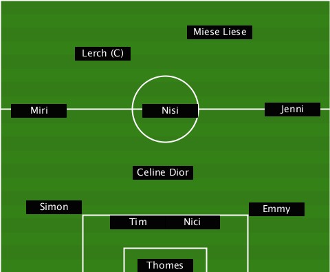 --------------------Miese Liese-- ---------Lerch (C)--------------- ---Miri---------Nisi---------Jenni- --------------Celine Dior-------- ----Simon------------------Emmy--- ------------Tim---Nici------------ ---------------Thomes------------