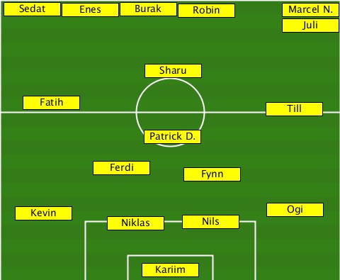 -------------Burak--------------- --Sedat-Enes--------Robin------Marcel N. ----------------------------Juli- ---------------Sharu------------- ----Fatih------------------Till--- ---------------Patrick D.-------- ----------Ferdi-----Fynn---------- ---Kevin-----Niklas--Nils-----Ogi--- ---------------Kariim------------