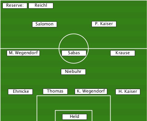 --Reserve:----------------------- --------Reichl------------------- --------Salomon-------P. Kaiser--- ---M. Wegendorf-Sabas------Krause-- ---------------Niebuhr----------- ---Ehmcke---Thomas--K. Wegendorf-H. Kaiser ---------------Held--------------