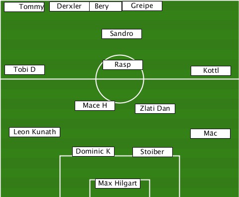 ------------------Greipe--------- --Tommy--Derxler-Bery-------------- ---------------Sandro------------ --Tobi D--------Rasp---------Kottl- -----------Mace H----Zlati Dan---- ---Leon Kunath--------------Mäc--- -----------Dominic K-Stoiber------ --------------Mäx Hilgart--------