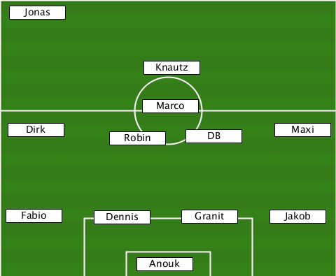 --Jonas-------------------------- ---------------Knautz------------ ---------------Marco------------- --Dirk-------Robin---DB--------Maxi- --Fabio----Dennis----Granit---Jakob- --------------Anouk--------------