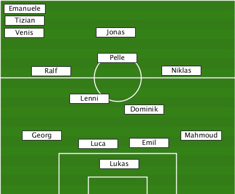 --Emanuele----------------------- --Tizian------------------------- --Venis---------Jonas------------- ---------------Pelle------------- ------Ralf--------------Niklas---- -----------Lenni----------------- ------------------Dominik-------- ----Georg------------------Mahmoud ------------Luca----Emil---------- ---------------Lukas-------------