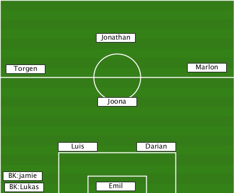 ---------------Jonathan---------- --Torgen--------------------Marlon ---------------Joona------------- ---------Luis--------Darian------- --BK:jamie----------------------- --BK:Lukas------Emil--------------