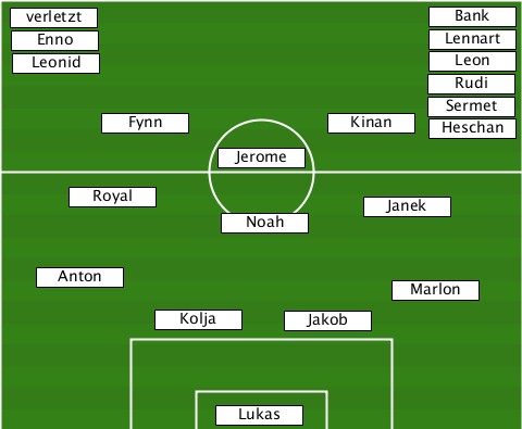 ----------------------------Bank- --verletzt----------------------- --Enno-----------------------Lennart --Leonid---------------------Leon- ----------------------------Rudi- ----------------------------Sermet --------Fynn-----------Kinan--Heschan ---------------Jerome------------ ------Royal--------------Janek---- ---------------Noah-------------- ----Anton-----------------Marlon-- -----------Kolja----Jakob--------- ---------------Lukas-------------