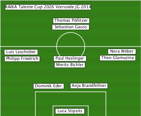 ---RAIKA Talente Cup 2026 Vorrunde JG 2014 -------------Thomas Pöllitzer---- -------------Sebastian Gauss----- --Luis Laschober-----------Nora Wöber --Philipp Friedrich-Paul Haslinger-Theo Glamuzina --------------Moritz Bichler----- ---------Dominik Eder-Anja Brandfellner --------------Luca Stipsits------