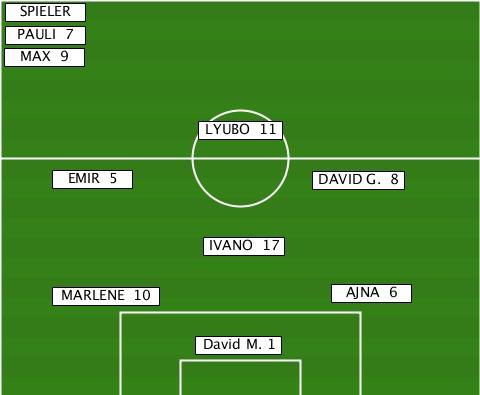 Ecken für uns David Ivano Ecken gegen uns kurze Stange Größenzuordnung schneller Konter Stürmer zentral Pressing Stürmer mit jew FlügelMittelfeld Defensive Mittelfeld hinter die Liniemind Mittevoll auf den Ball nicht ungestüm drauflaufen antizipieren Körpereinsatz ab 1 Minute Härte Kommunikation ein Team positive KommKritik Einer für ALLE ALLE für EINEN Elfer Ivano Marlene David G Freistöße Ivano David G