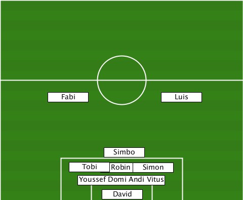 -----------------------Luis------ --------Fabi--------------------- ---------------Simbo------------- -----------Tobi-Robin-Simon-------- ------------Youssef Domi Andi Vitus ---------------David-------------