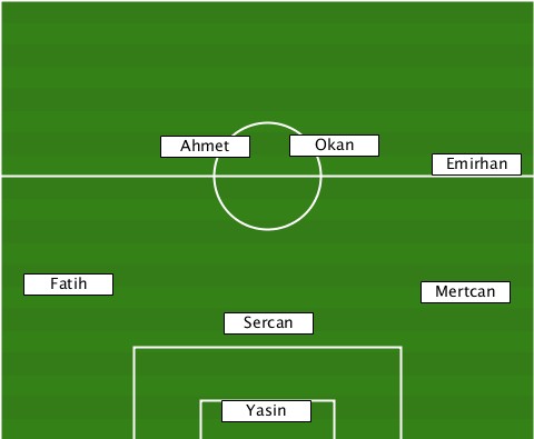 -------------------Okan---------- -----------Ahmet----------------- ---------------------------Emirhan ---Fatih--------------------Mertcan ---------------Sercan------------ ---------------Yasin-------------