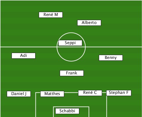 ----------René M----------------- -------------------Alberto------- ---------------Seppi------------- ----Adi------------------Benny---- ---------------Frank------------- ---Daniel J-Matthes--René C-Stephan F --------------Schabbi------------