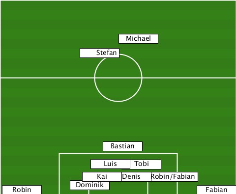------------------Michael-------- ------------Stefan--------------- ---------------Bastian----------- --------------Luis-Tobi----------- -------------Kai--Denis-Robin/Fabian --Robin-----Dominik-----------Fabian