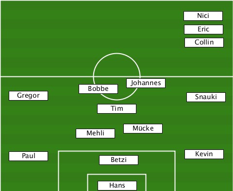 ---------------------------Nici-- ---------------------------Eric-- ---------------------------Collin ---Gregor----Bobbe---Johannes-Snauki ---------------Tim--------------- ------------Mehli--Mücke---------- ---Paul---------Betzi--------Kevin- ---------------Hans--------------