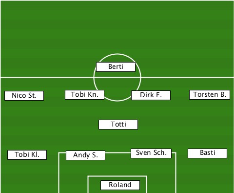 ---------------Berti------------- --Nico St.-Tobi Kn.--Dirk F.--Torsten B. ---------------Totti------------- --Tobi Kl.-Andy S.---Sven Sch.-Basti ---------------Roland------------