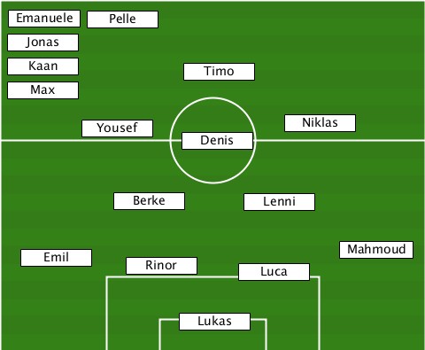 --Emanuele----------------------- --------Pelle-------------------- --Jonas-------------------------- --Kaan----------Timo-------------- --Max---------------------------- --------Yousef--Denis----Niklas---- ----------Berke------Lenni-------- ---Emil-----Rinor----Luca-----Mahmoud ---------------Lukas-------------