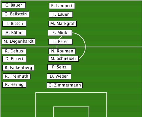 --C. Bauer----------------------- -------------F. Lampert---------- --C. Beilstein-T. Lauer----------- --T. Bitsch--M. Markgraf---------- --A. Böhm----E. Mink-------------- --M. Degenhardt-T. Peter---------- --R. Dehus---N. Roumen------------ --D. Eckert--M. Schneider--------- --R. Falkenberg-P. Seitz---------- --R. Freimuth-D. Weber------------ --R. Hering--C. Zimmermann--------