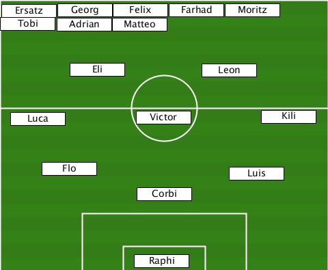 -----------------------Moritz---- --Ersatz-Georg-Felix-Farhad--------- -Tobi---Adrian-Matteo-------------- --------Eli-----------Leon-------- --Luca----------Victor-------Kili-- ------Flo----------------Luis----- ---------------Corbi------------- ---------------Raphi-------------