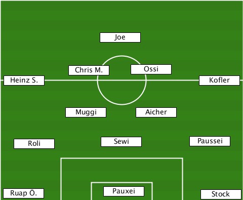 ---------------Joe--------------- ----------Chris M.--Ossi---------- --Heinz S.-------------------Kofler ----------Muggi-----Aicher-------- ---Roli---------Sewi--------Paussei --Ruap Ö.-------Pauxei--------Stock