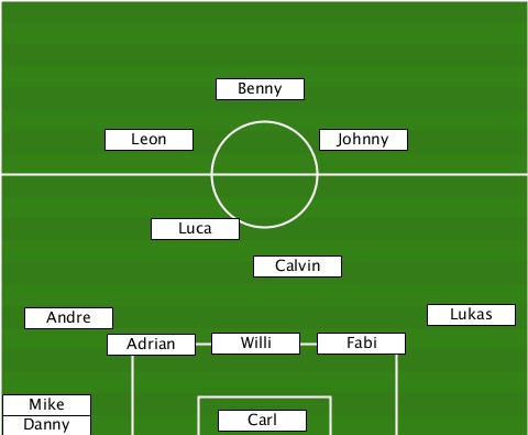---------------Benny------------- --------Leon----------Johnny------ -----------Luca------------------ -----------------Calvin---------- ---Andre--------------------Lukas- --------Adrian-Willi---Fabi-------- --Mike-Danny-----Carl--------------