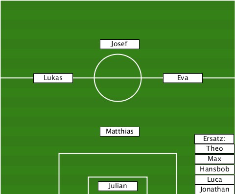---------------Josef------------- ------Lukas--------------Eva------ ---------------Matthias---------- ----------------------------Ersatz: ----------------------------Theo- ----------------------------Max-- ----------------------------Hansbob ---------------Julian--------Luca-Jonathan