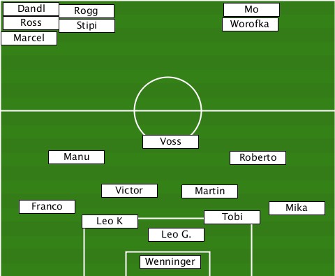 --Dandl-------------------------- -------Rogg-------------Mo-------- --Ross--Stipi------------Worofka--- --Marcel------------------------- ---------------Voss-------------- ------Manu--------------Roberto--- -----------Victor---Martin-------- ---Franco-Leo K--------Tobi---Mika-- ----------------Leo G.----------- ---------------Wenninger---------