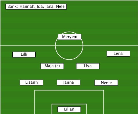 ---Bank: Hannah, Ida, Jana, Nele- ---------------Meryem------------ ----Lilli------------------Lena--- -----------Maja (c)-Lisa---------- ------Lisann----Janne----Neele----- ---------------Lilian------------