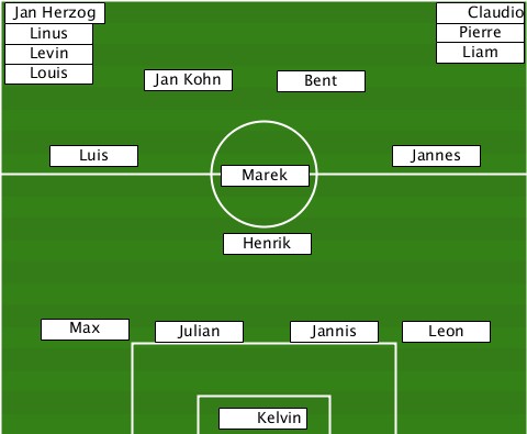 --Jan Herzog--------------------- ----------------------------Claudio --Linus----------------------Pierre --Levin----------------------Liam- --Louis----Jan Kohn-Bent----------- ----Luis------------------Jannes-- ---------------Marek------------- ---------------Henrik------------ ----Max-----Julian---Jannis--Leon--- ---------------Kelvin------------